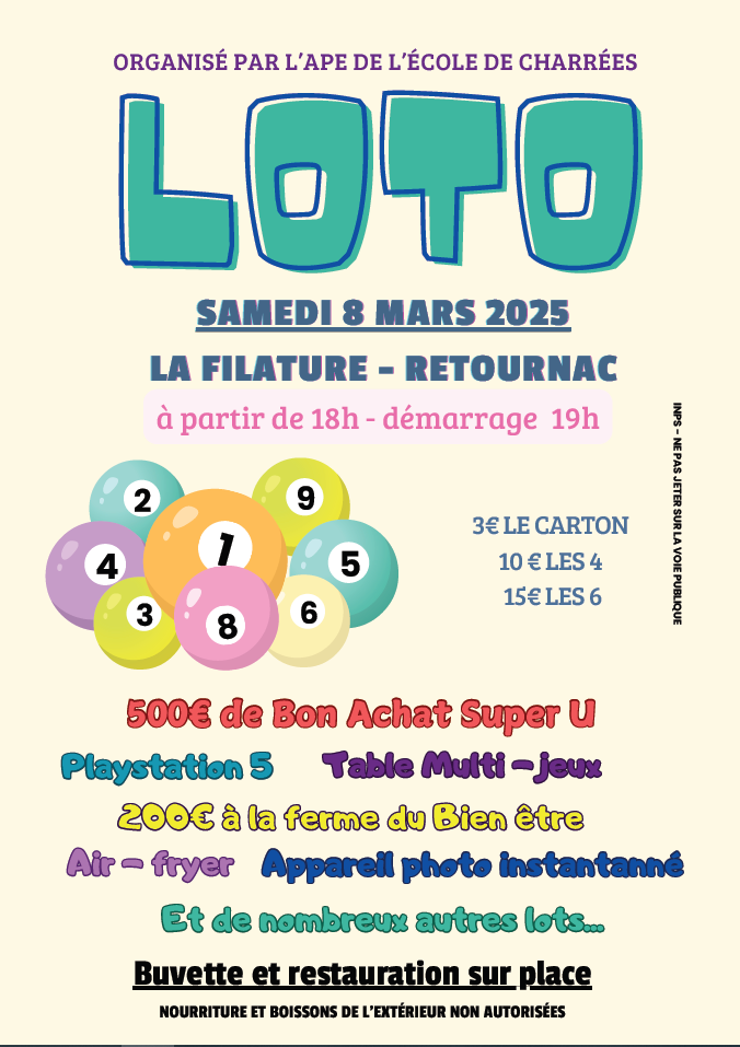 [ Agenda]:LOTO DE L'APE DE CHARREES