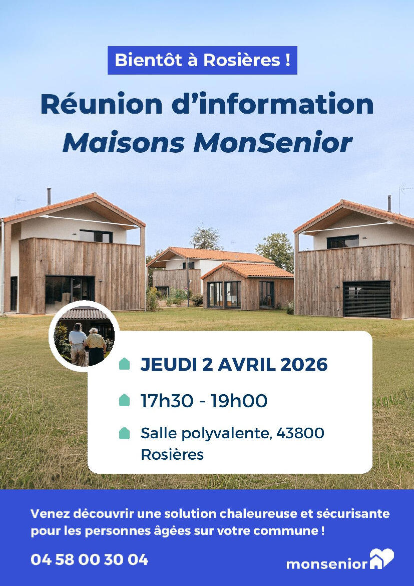 Dans ce cadre, MonSenior invite tous les habitants de la commune et alentours à une réunion de présentation qui se tiendra le jeudi 2 avril 2026, de 17h30 à 19h00 à la salle polyvalente.