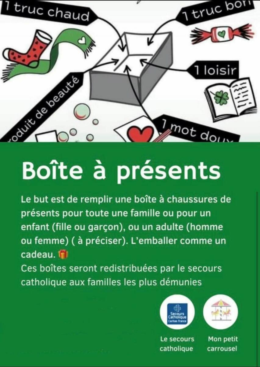 Le "Secours Catholique" et "Mon petit carrousel" organisent des collectes de "Boîtes à cadeaux" pour Noël.
