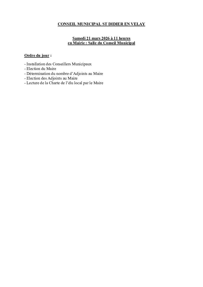 Retrouvez en pièce jointe l'ordre du jour du prochain conseil municipal :
