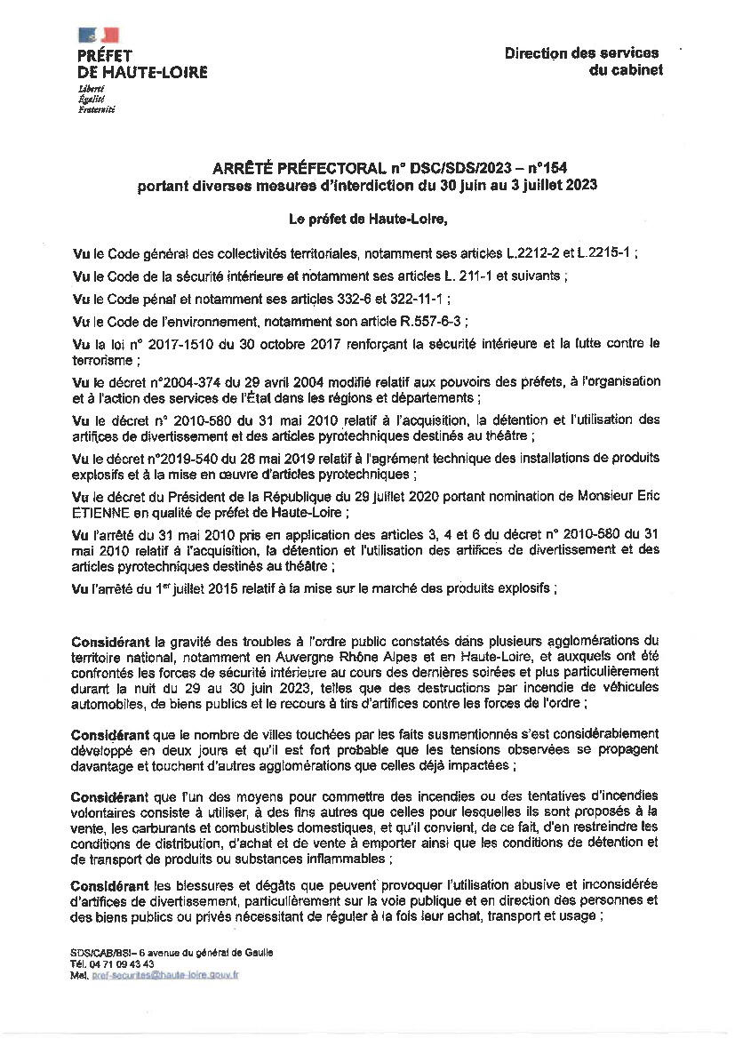 ATTENTION : mesures immédiates -interdictions préfectorales