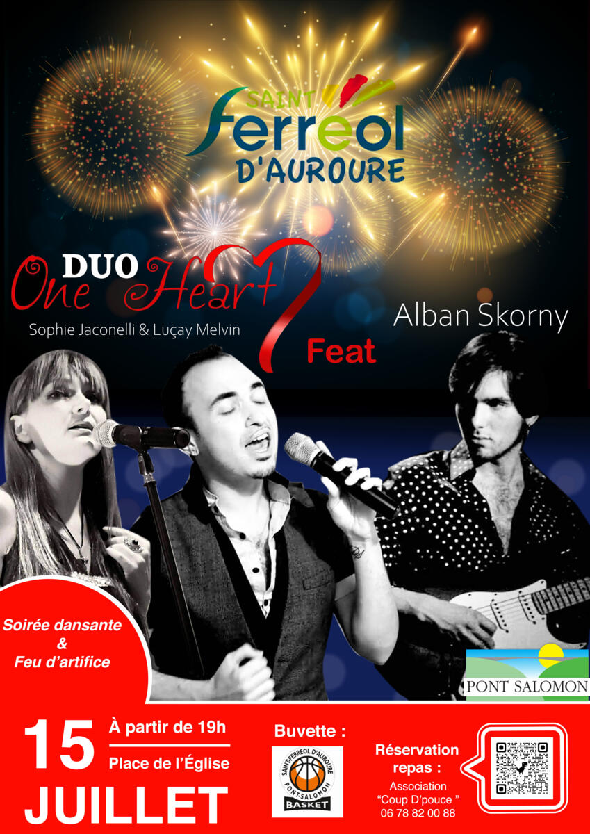 🎇Feu d'artifice et une soirée dansante animée par le groupe One Heart (Sophie Jaconelli et Luçay Melvin) feat Alban Skorny) organisés en association par les communes de Saint-Ferréol-d'Auroure et Pont Salomon   💃🎤