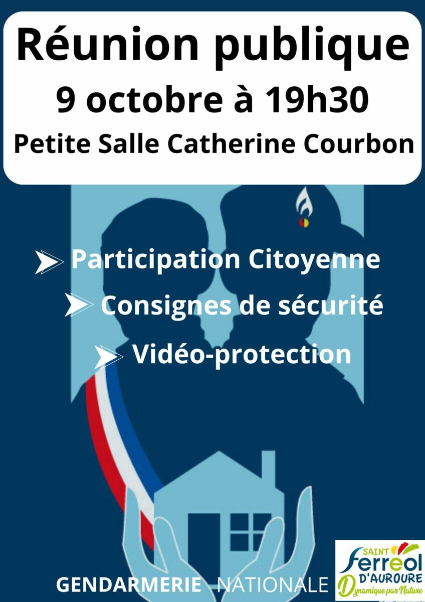 Mercredi 9 octobre à 19h30 dans la petite salle Catherine Courbon se tiendra une réunion publique animée par le Major Evesque sur le thème de la sécurité.