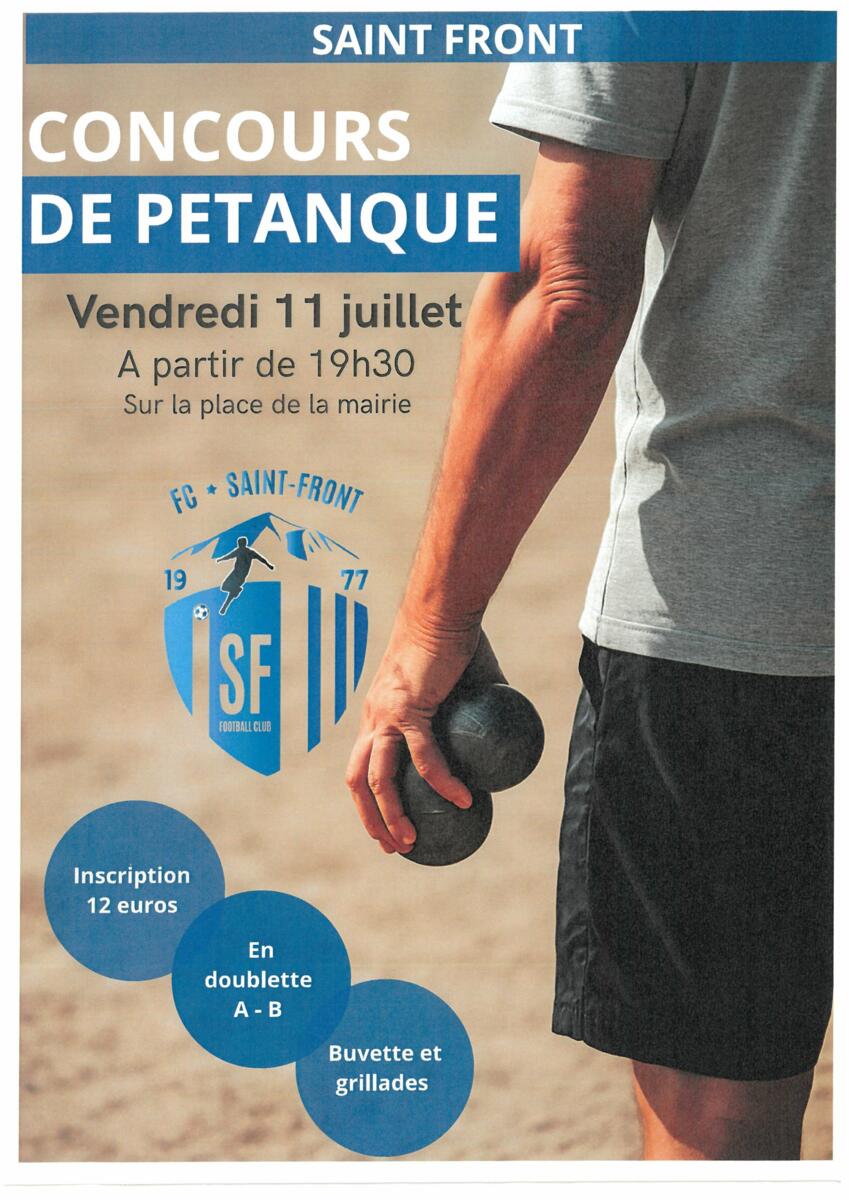 Vendredi 11 juillet : Concours de pétanque organisé par le club de foot de Saint-Front