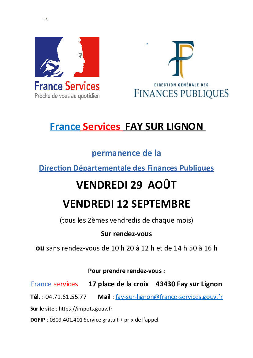 Permanences de la DDFIP à Fay-sur-Lignon 25-08-06 Permanences DDFIP : Vendredi 29 août et Vendredi 12 septembre