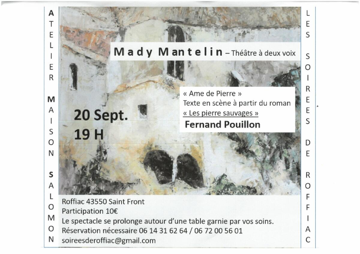 Soirées de Roffiac : Spectacle 24-09-12 Le 20 septembre 2024 : Spectacle à 19 heures à l'atelier maison Salomon.