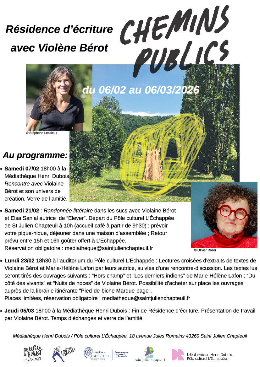 Cette écrivaine arrive en résidence à Saint Julien Chapteuil, pour un mois, dans le cadre du projet Chemins Publics.