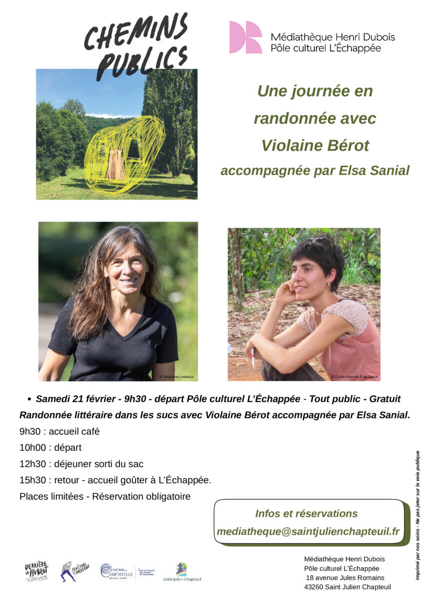 Violaine Bérot (écrivaine en résidence à St Julien Chapteuil) vous accompagne pour une randonnée littéraire dans les sucs.