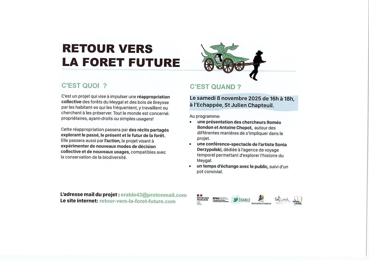 RETOUR VERS LA FORET FUTURE 25-11-03 Conférence le Samedi 8 novembre de 16 h à 18 h à l'Echappée Source : Mairie de Saint Julien Chapteuil