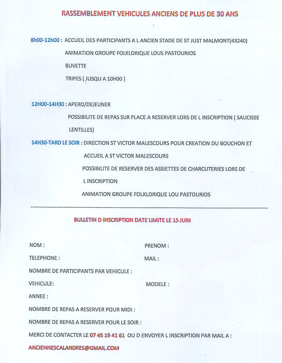 Possibilité de s'inscrire pour le repas du 6 juillet lors du rassemblement de véhicules anciens