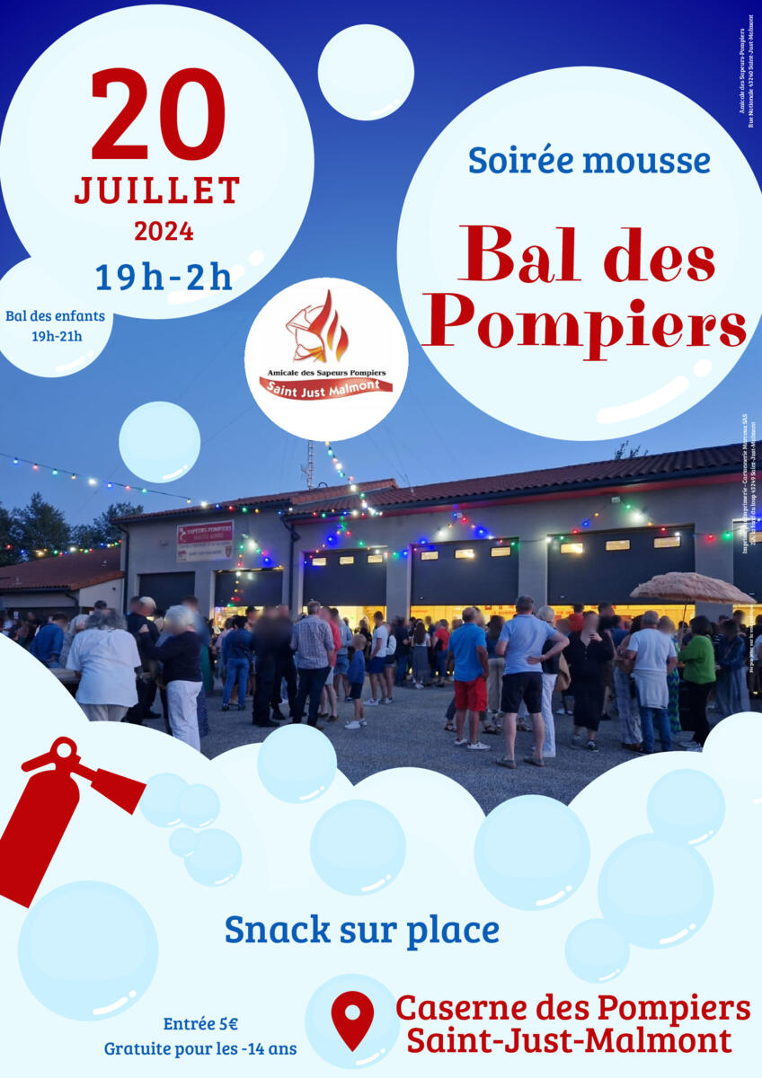 L'Amicale des Sapeurs-Pompiers de Saint Just Malmont organise le Bal des Pompiers, avec une soirée mousse...