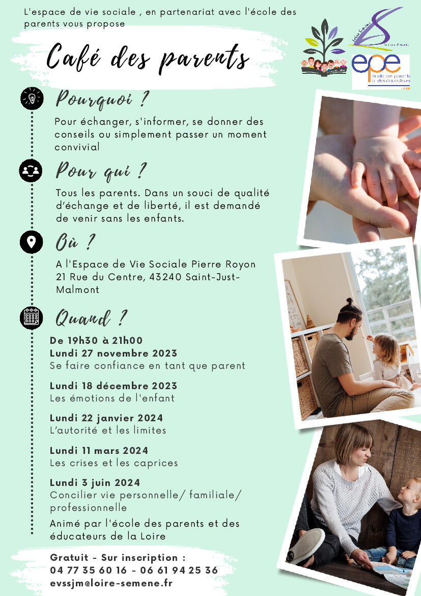 Pour rappel : le café des parents est un temps convivial de paroles et d’échanges destiné aux parents sans la présence de leur(s) enfant(s) avec un professionnel de l’écoute qui garantit un cadre bienveillant et sans jugement.