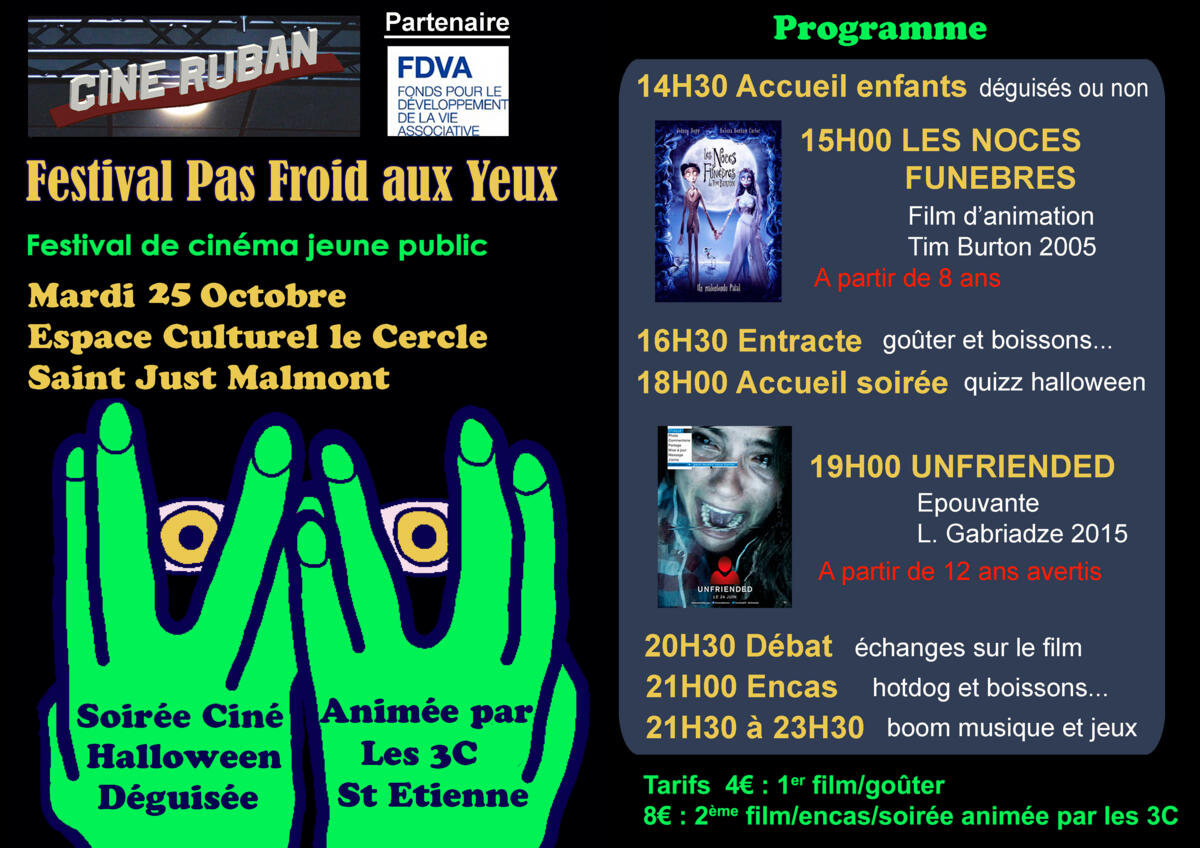 En partenariat avec le FDVA (Fonds pour le Développement de la Vie Associative), Ciné Ruban propose deux séances Spécial Halloween pour le jeune public, dans le cadre du Festival de Cinéma Jeune Public :