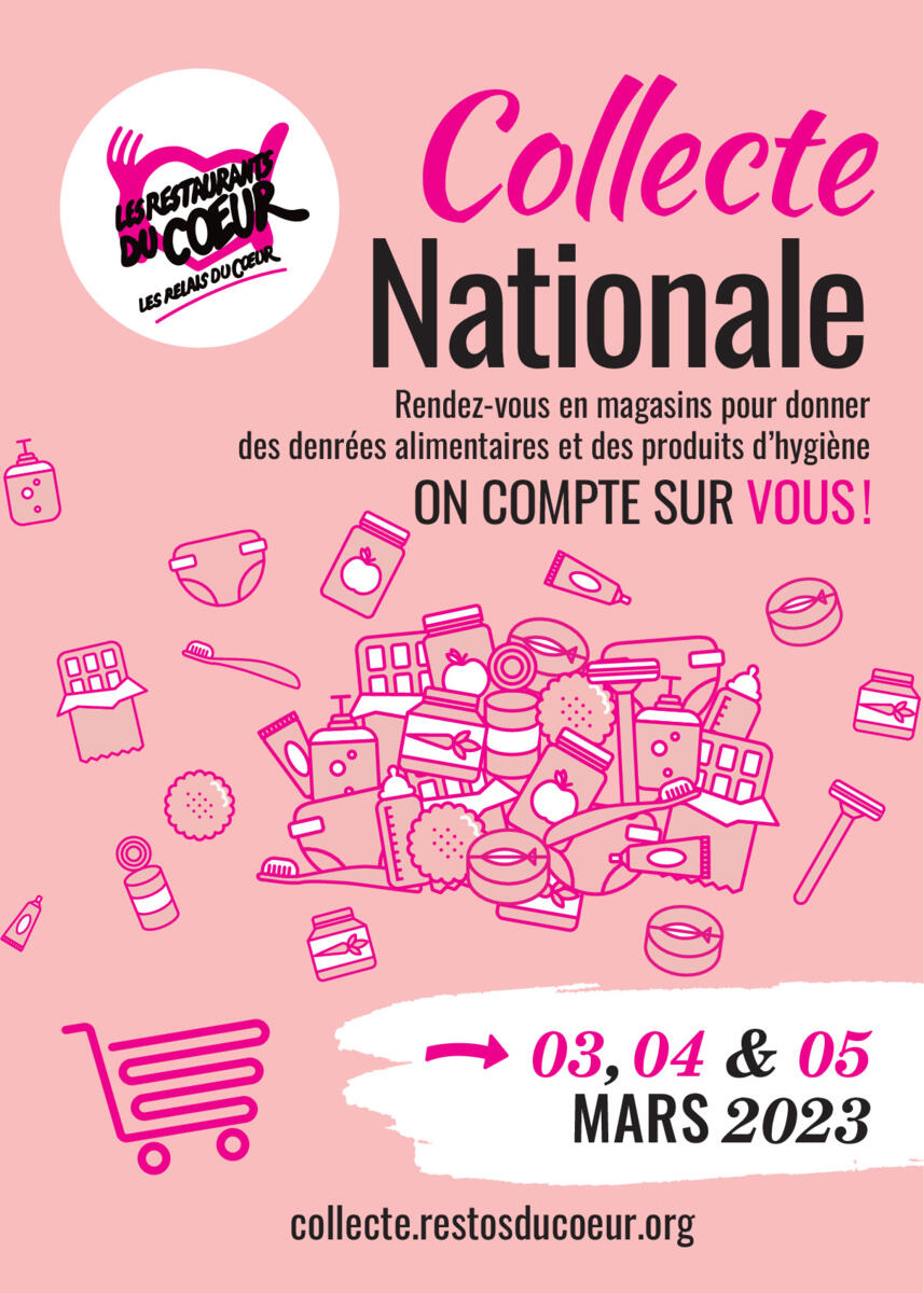 Les Restos du Coeur organisent leur Collecte Nationale les 3, 4 et 5 Mars 2023.
