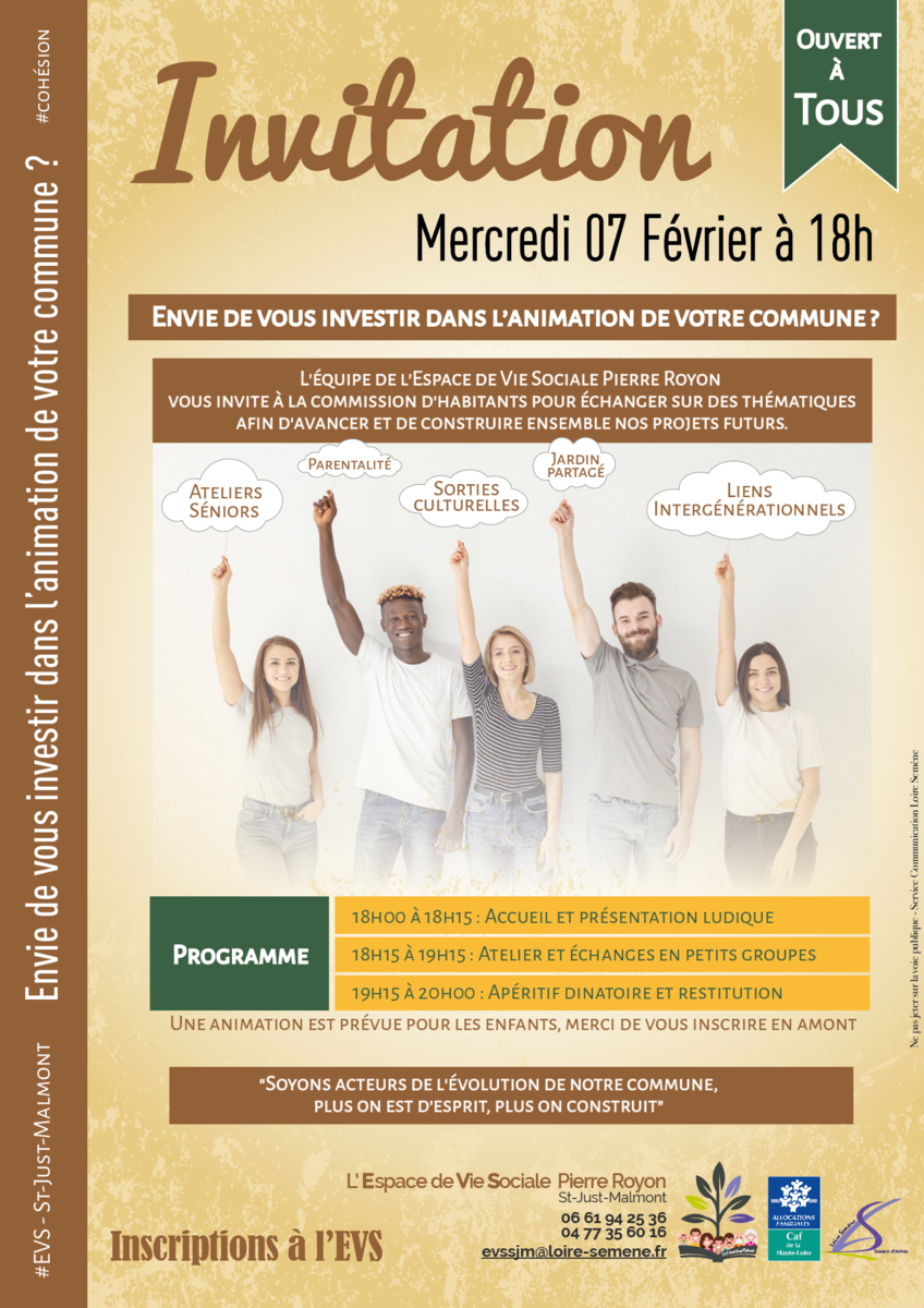 Gratuit et ouvert à tous sur inscriptions au 04 77 35 60 16 / 06 61 94 25 36 ou par mail à evssjm@loire-semene.fr