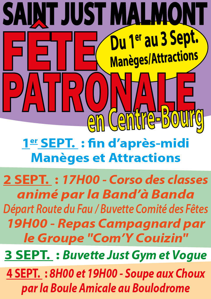Dans le cadre de la Fête Patronale organisée par la municipalité les 1er, 2 et 3 septembre 2023, des manèges et attractions foraines seront installés dans le centre-bourg. Il y a donc lieu de prévoir une circulation et un stationnement réglementés.