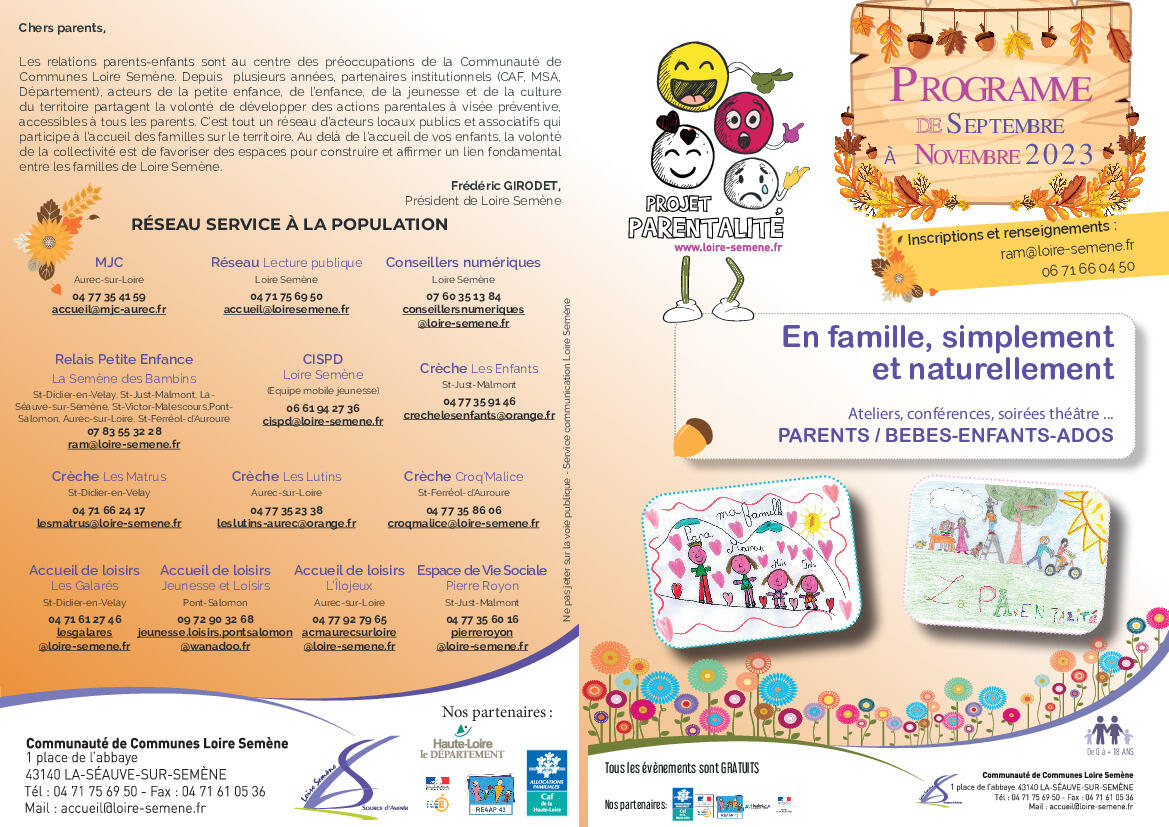 Après un été de détente, le projet parentalité est heureux de vous proposer son programme de Septembre à Novembre.