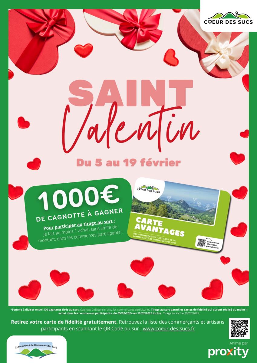 Tirage au sort st Valentin 25-01-29 Grâce à la carte avantage cœur des sucs, participez au tirage au sort de la St Valentin