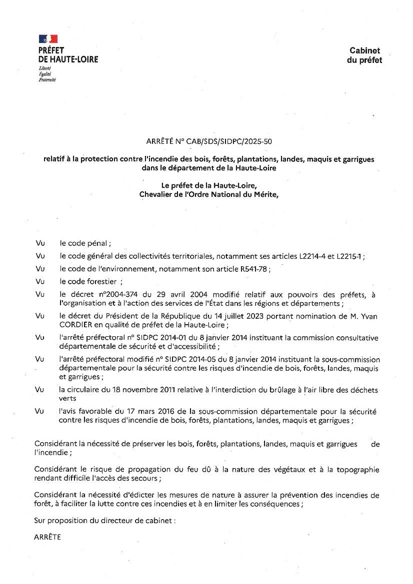 Nouvel arrêté préfectoral relatif à l'emploi du feu dans le département pris le 14 mars 2025