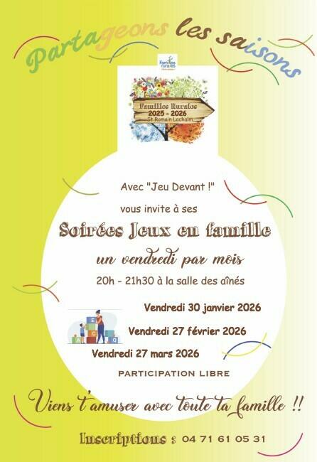 SOIRÉE JEUX 26-01-16 Vendredi 30 janvier dès 20h00 organisé par Familles Rurales de Saint-Romain-Lachalm