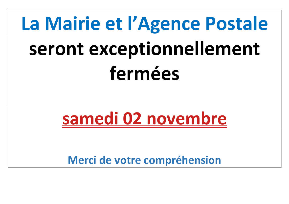 Fermeture exceptionnelle de la Mairie et de l'agence postale samedi 02 novembre 2024
