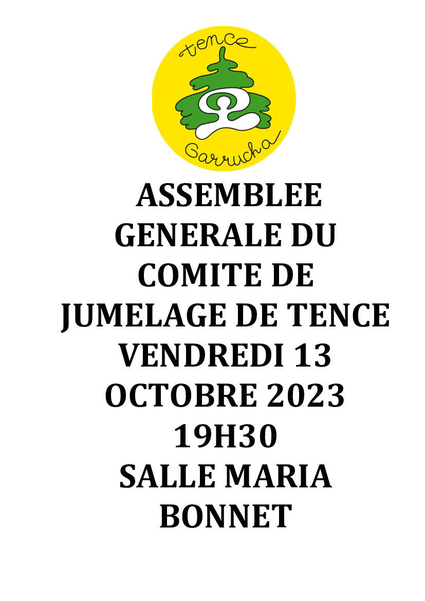 Assemblée générale du Comité de jumelage de Tence 23-10-11 📅 Vendredi 13 octobre 2023 🕘 19H30 📌 Salle Maria Bonnet