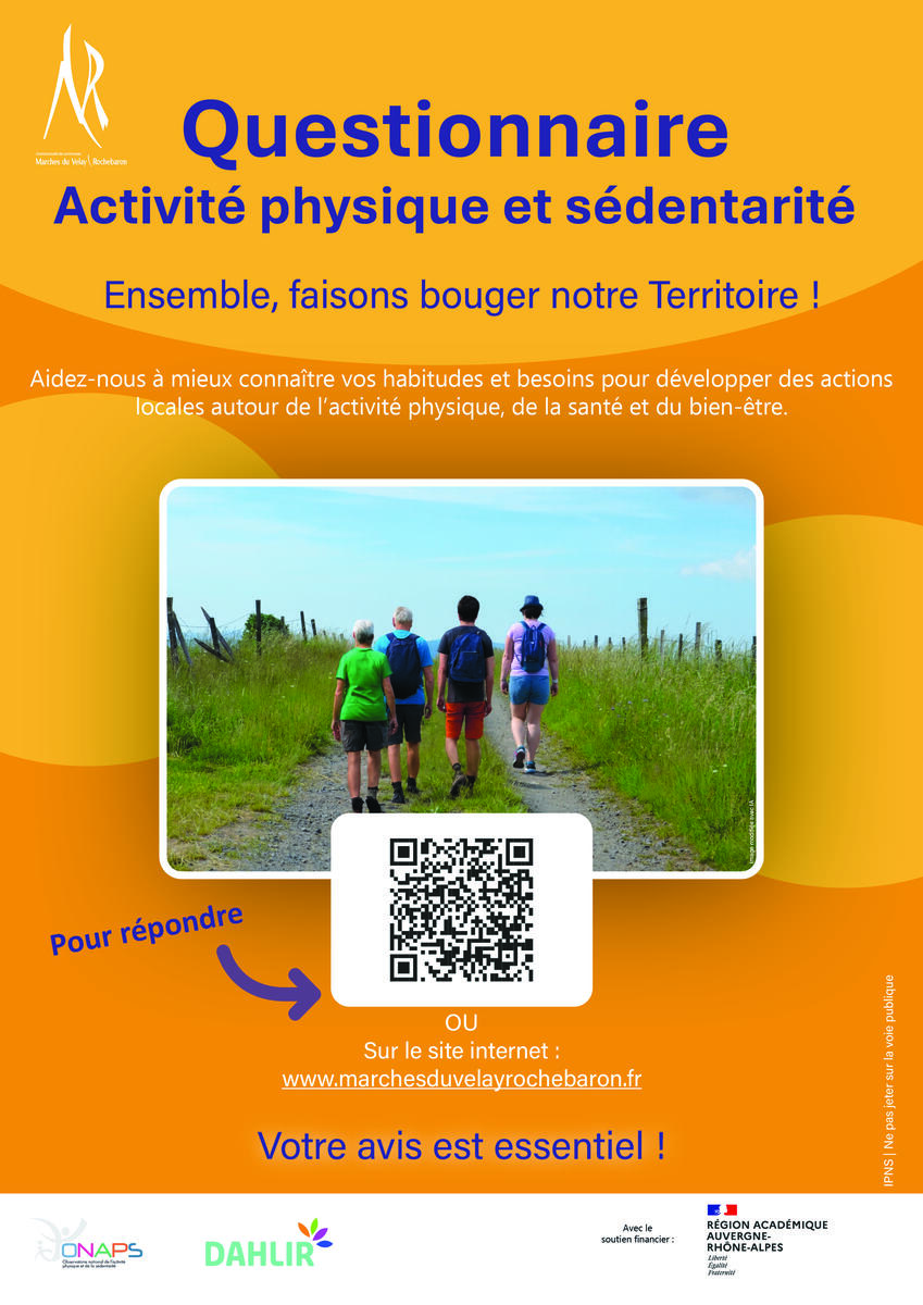 Plus d’information sur notre site internet : https://www.marchesduvelayrochebaron.fr/actualites/questionnaire-activite-physique-et-sedentarite/