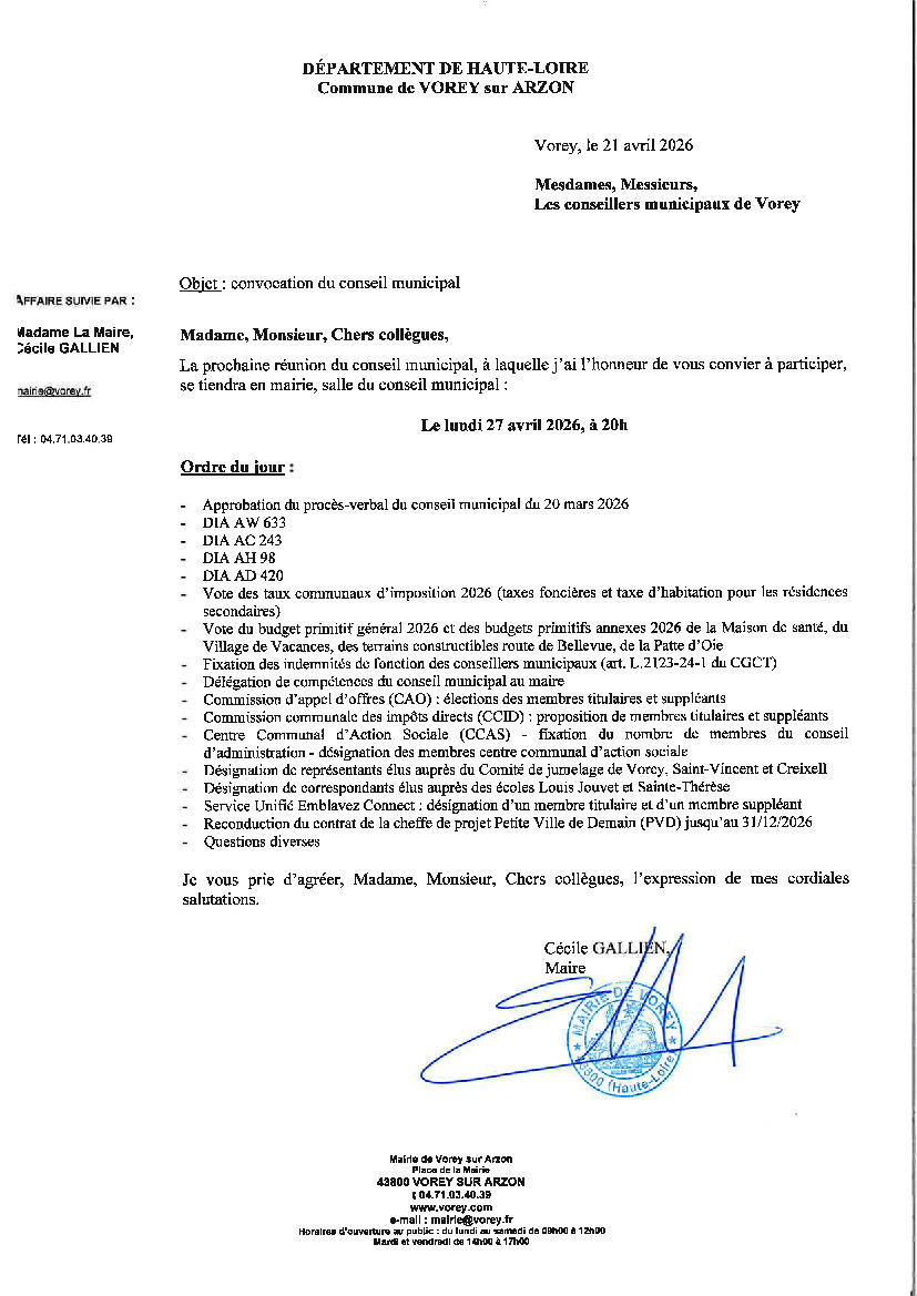 Toute l'actualité de Mairie de Vorey