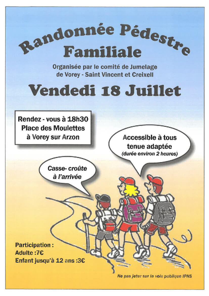 Randonnée pédestre familiale le Vendredi 18 Juillet 2025