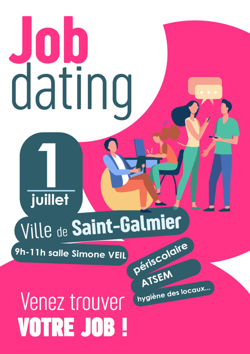👉La ville de Saint-Galmier organise une rencontre avec le service ressources humaines de la ville, le samedi 1er juillet de 9h à 11h, à la salle Simone Veil.Ce temps d'échange conviviale permettra de vous présenter les postes à pourvoir dans les domaines suivants : périscolaire, ATSEM, hygiène des locaux... Venez trouver votre Job ! 👍