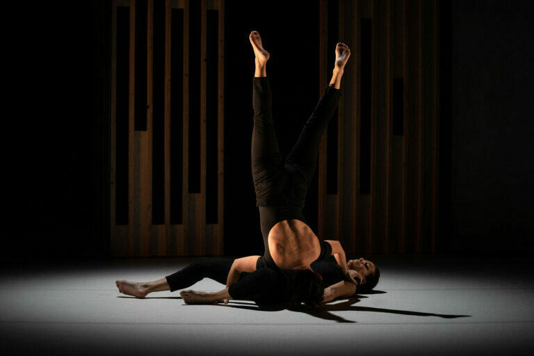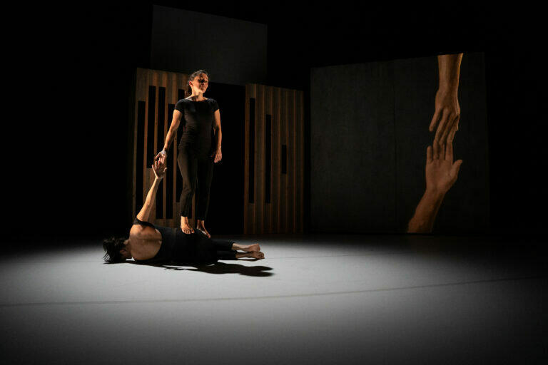 4ème Mur est un spectacle de danse, mais pas que... il y a une scène avec deux danseuses et des spectateurs dans la salle.