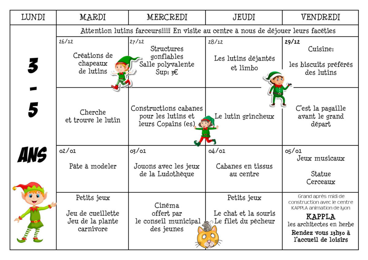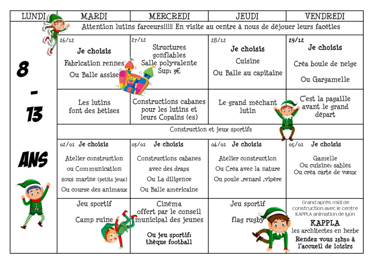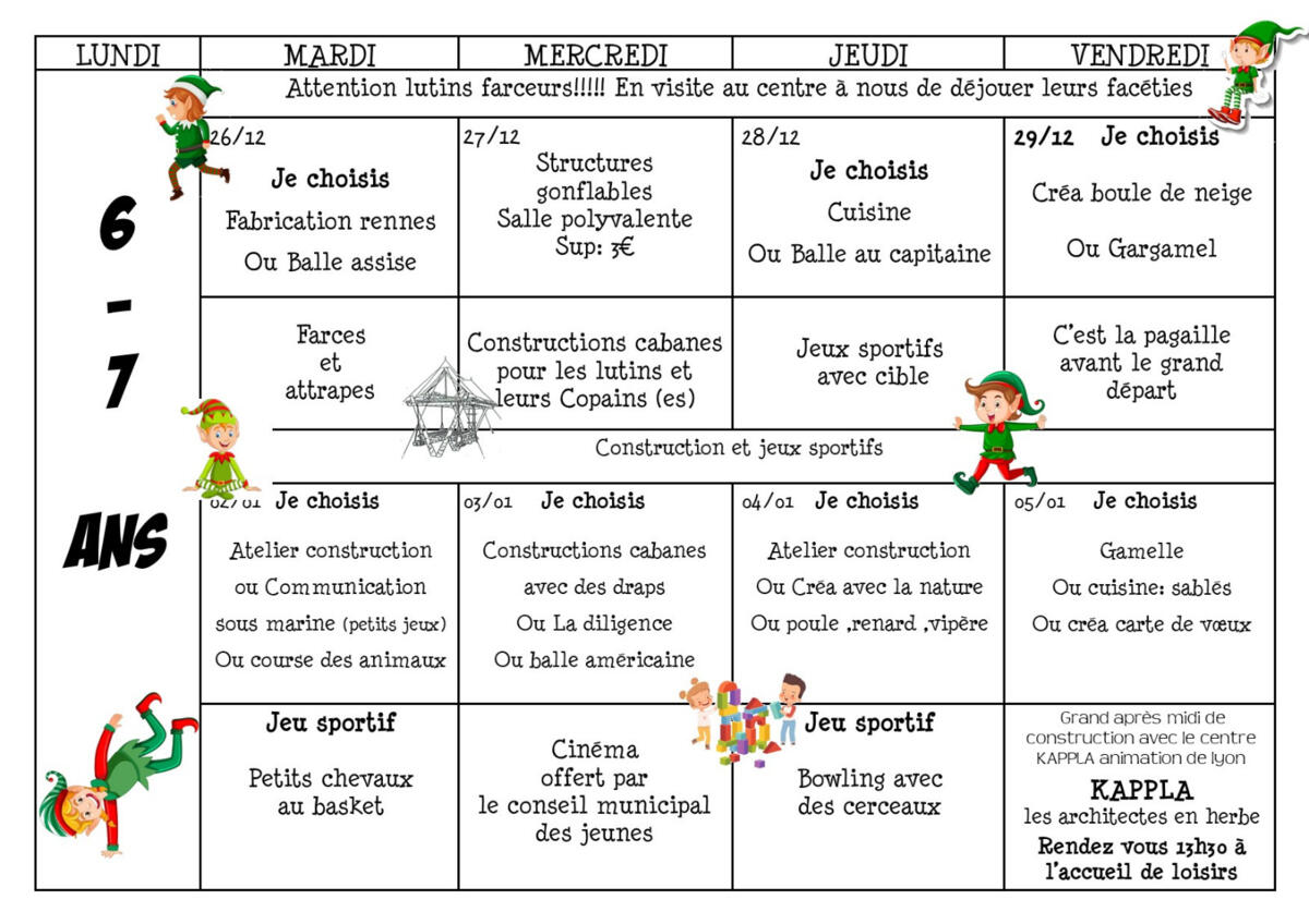 Voici les programmes des prochaines vacances au centre de loisirs du 26/12